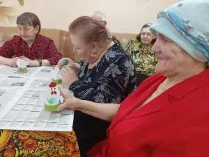 Председатель ветеранской организации из Красной Слободы Альфия Галяутдинова помогла жильцам сделать подставки для пасхальных яиц.